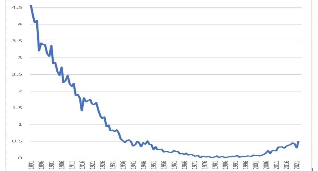 Живородени деца на 1000 жени на възраст 47 до 50 години в Швеция, 1891-2022.