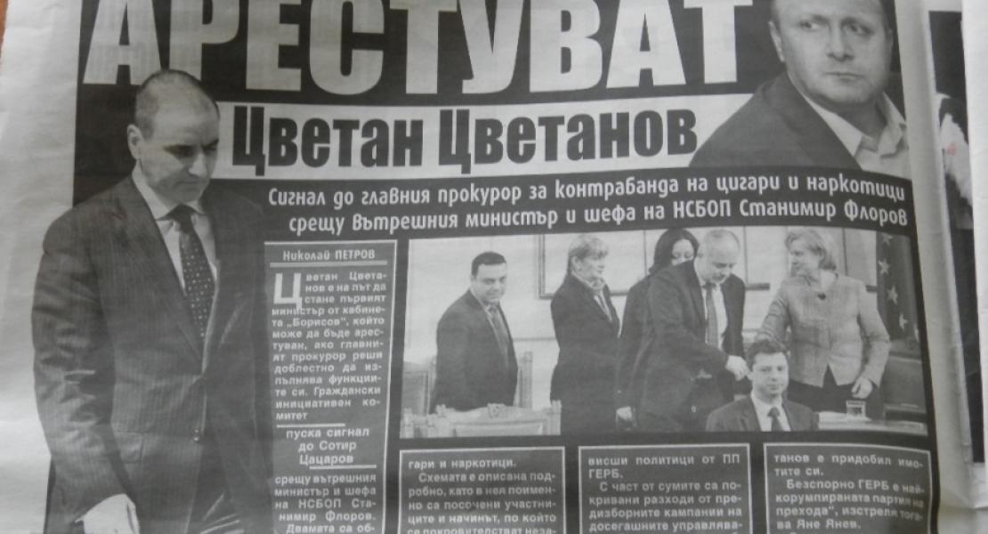 Цветан Цветанов е на път да стане първият министър от кабинета „Борисов“, който може да бъде арестуван, ако главният прокурор реши доблестно да изпълнява функциите си. Граждански инициативен комитет пуска сигнал до Сотир Цацаров срещу вътрешния министър и шефа на НСБОП Станимир Флоров. Двамата са обвинени в прикриване на контрабандни канали за цигари и наркотици.