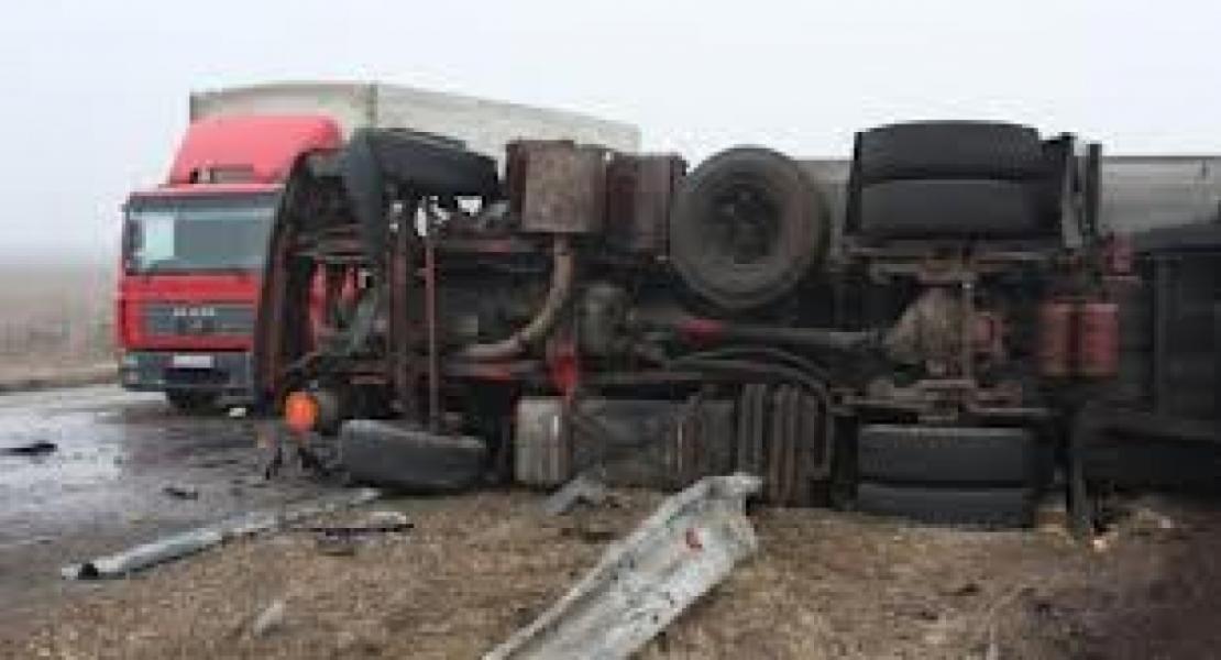 ТИР с домати се е обърнал на автомагистралата, съобщи "Фокус". Шофьорът е с леки наранявания. Инцидентът е станал около 8,30 ч. между 7-ми и 9-ти километър, на около 1,5 км от отбивката за Нови хан. Причината за пътното произшествие е заспиване на водача. При преобръщането на ТИР-а е счупена мантинелата, машината е паднала край пътното платно. За отстраняването на камиона ще бъде необходим кран, на място се очакват и представители на митниците.